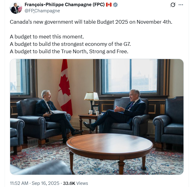 Canada’s new government will table Budget 2025 on November 4th.